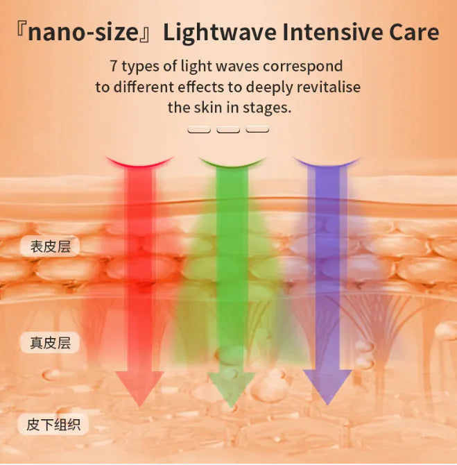 Benefits: Red LED light: Stimulates collagen, reduces wrinkles, firms skin. Blue LED light: Helps fight acne-causing bacteria, reduces breakouts. Green LED light: Improves skin tone and reduces pigmentation. Enhances skin elasticity and circulation. Provides spa-quality skincare at home.